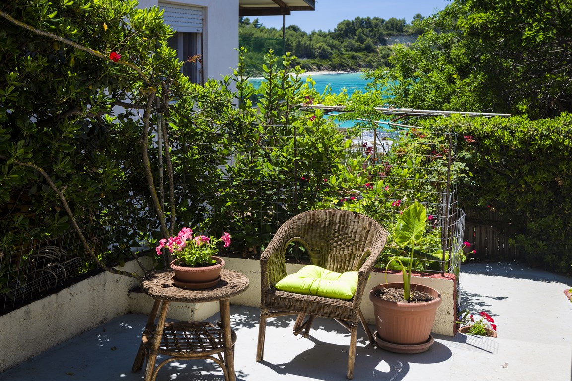 Both houses have a magnificent sea view and a private path to a sandy cove.